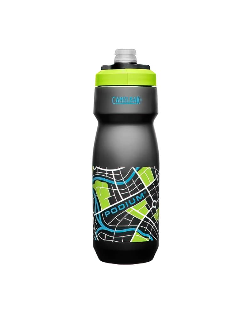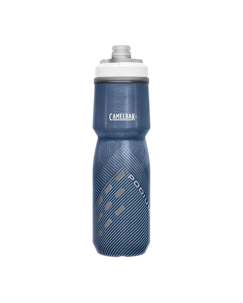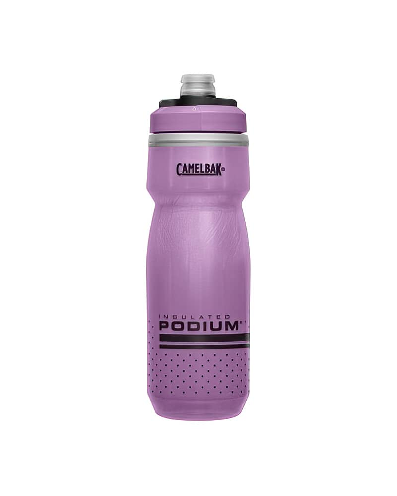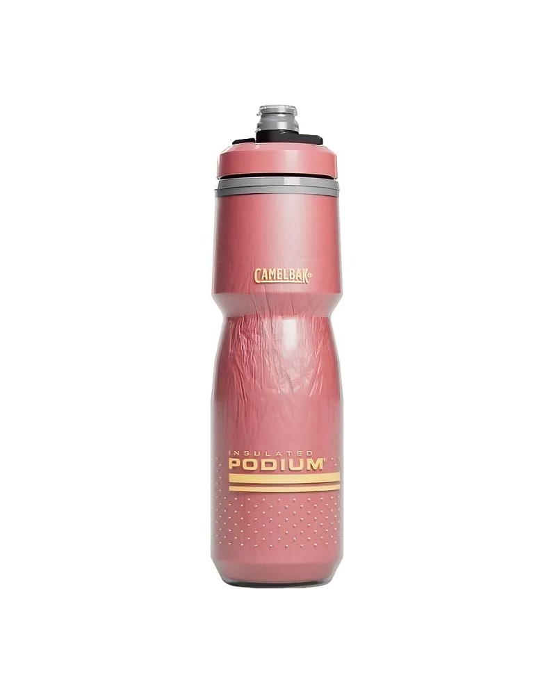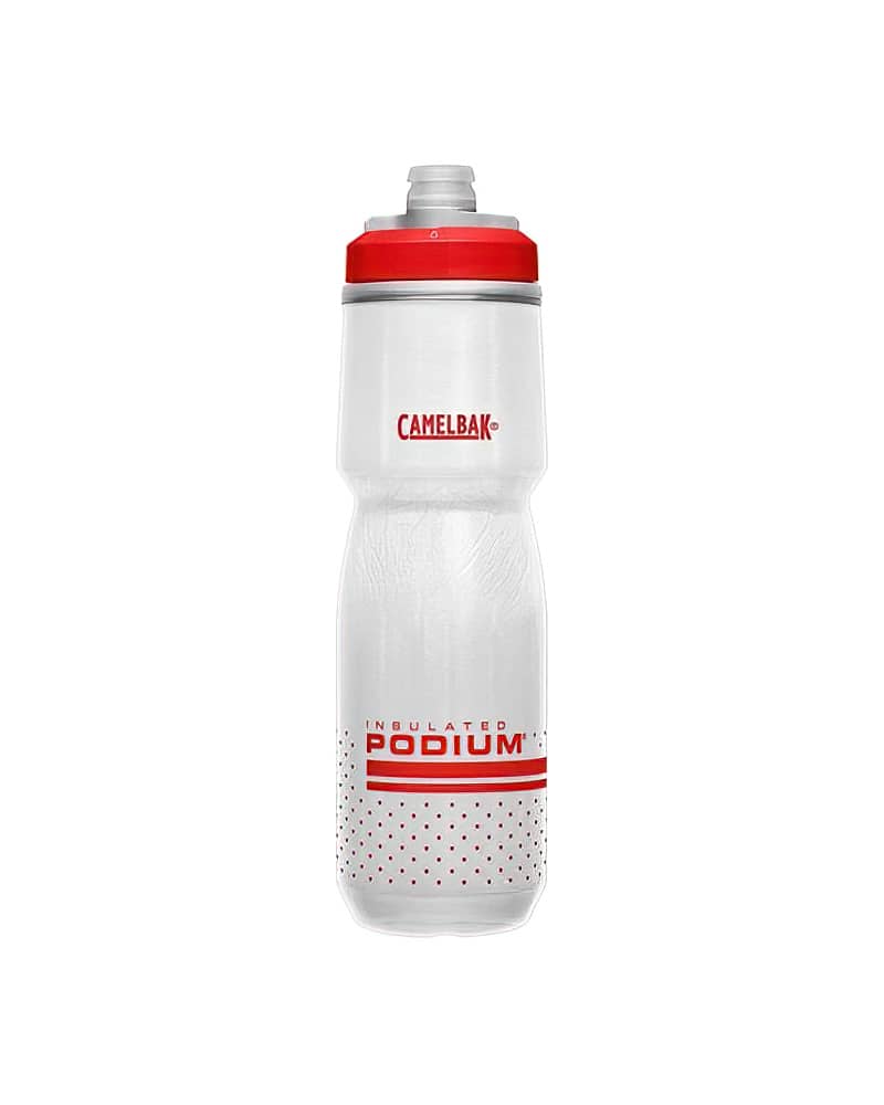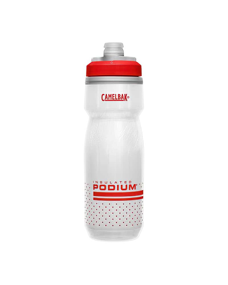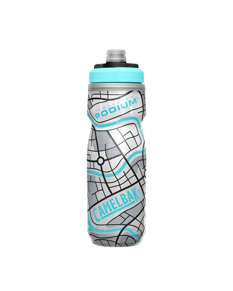 Derived from superior materials including Trutaste Polypropylene with HydroGuard, and featuring double-wall insulation, the CamelBak Podium Chill Insulated Water Bottle is the perfect cold-storage water bottle for cycling adventures. Keeping your body properly hydrated and improving your on-road performance is simplified thanks to this revolutionary sports bottle. Cycling enthusiasts have for years trusted CamelBak to provide them superior bottles for water that are optimized for peak performance. And the Podium Chill bike water bottle continues to elevate CamelBak as the best of the best in the cycling world. This premium bicycle water bottle has been reengineered to securely fit in a variety of bicycle bottle cages. The water bottles are easy to squeeze, allowing you to take in more water with less effort. Our CamelBak reusable sports water bottles are engineered with a high flow, self-sealing cap, which maximizes flow rate while reducing spills and splashes. The Podium Chill is also 100% free of BPA, BPS, and BPF.