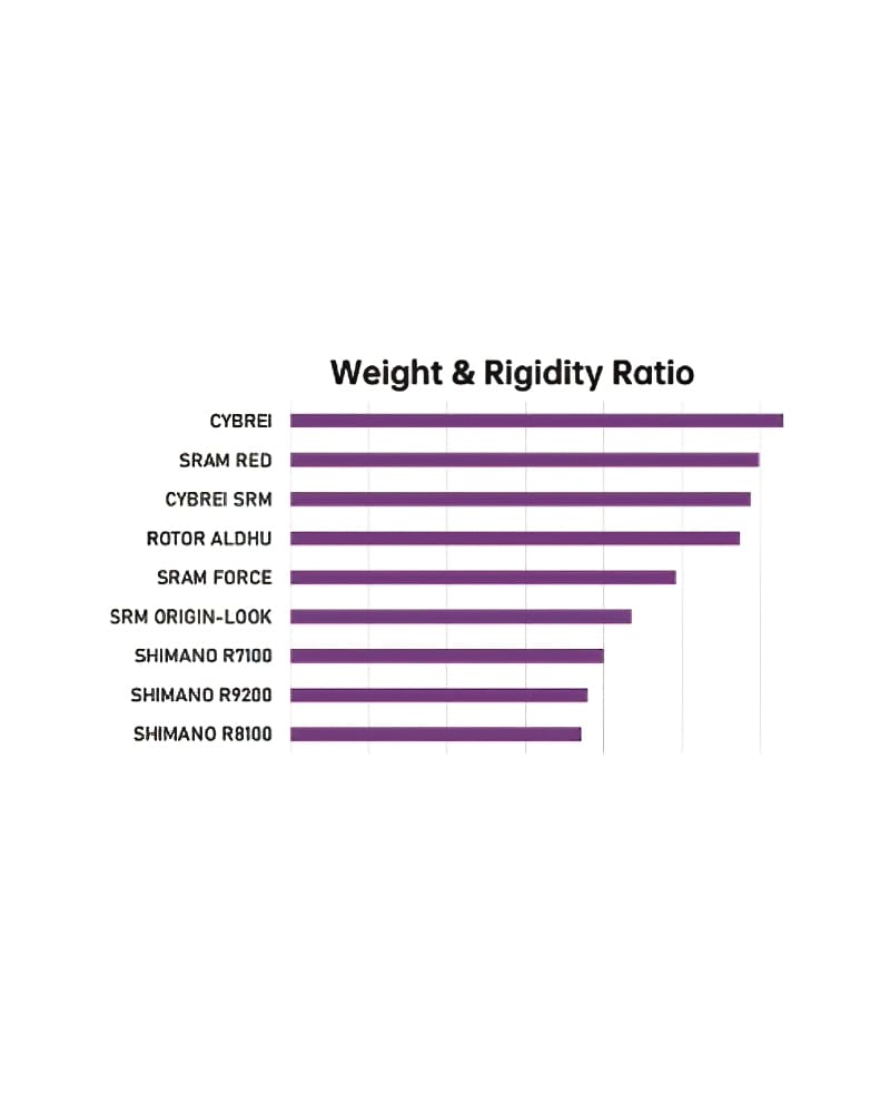 The CYBREI carbon fiber crank took 3 years from concept to implementation. During this period, it passed testing from UCI teams and World Tour racers and had good feedback. Our goal is to reduce the weight of the bike as much as possible without sacrificing stiffness. Compared with other cranks on the market, our carbon fiber crank surpasses them interms of intensity and lightweight. CYBREI provides crank leg lengths from 157.5 to 175mm,in order to giving riders more choice