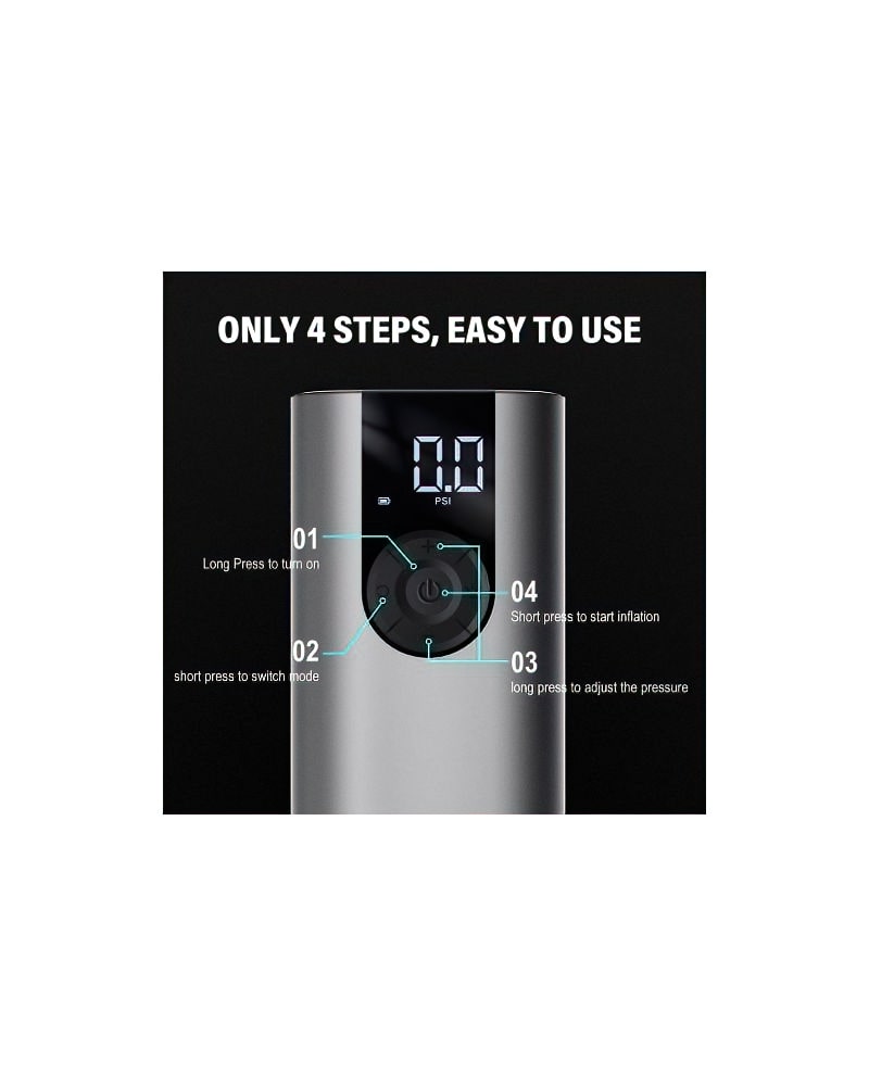 Precise pressure measurement using a high-quality intelligent sensor chip, ensuring accuracy within 0.1 bar. The large screen displays real-time pressure readings for safer inflation.