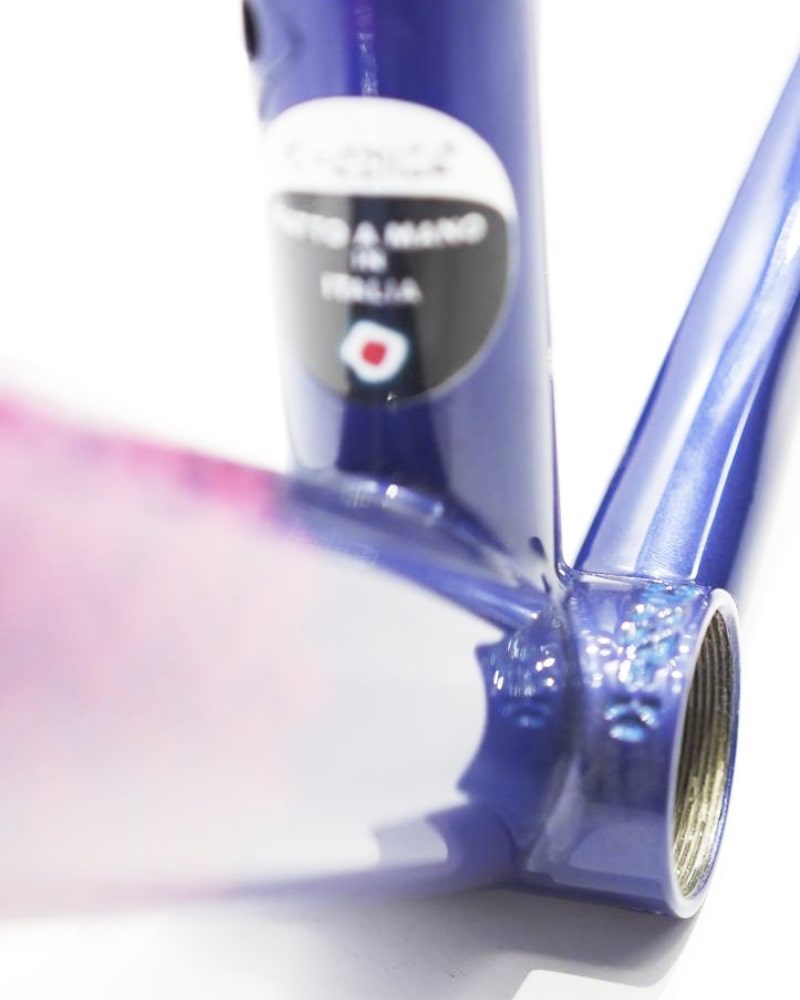 DeAnima is a reknown custom frame maker which designs, tests and builds their frames at their base in Pergine Valsugana, in the heart of Northern Italy. This frame is a discontinued NOS from their Defer series, Size XS.