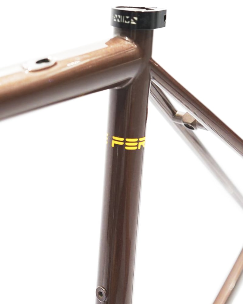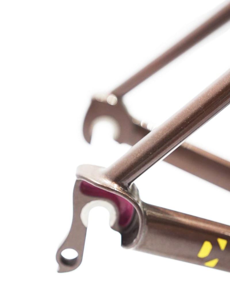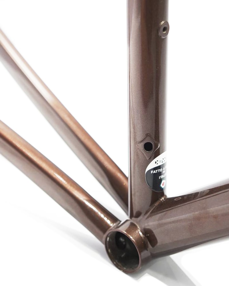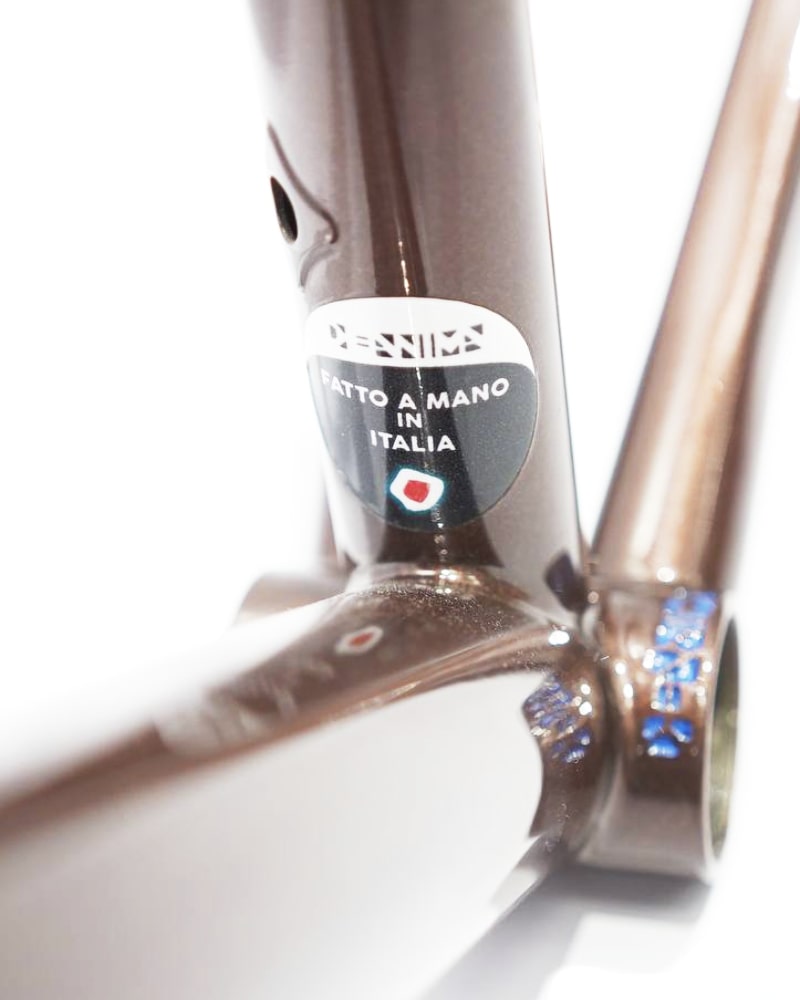 DeAnima is a reknown custom frame maker which designs, tests and builds their frames at their base in Pergine Valsugana, in the heart of Northern Italy. This frame is a discontinued NOS from their Defer series, Size XXS.