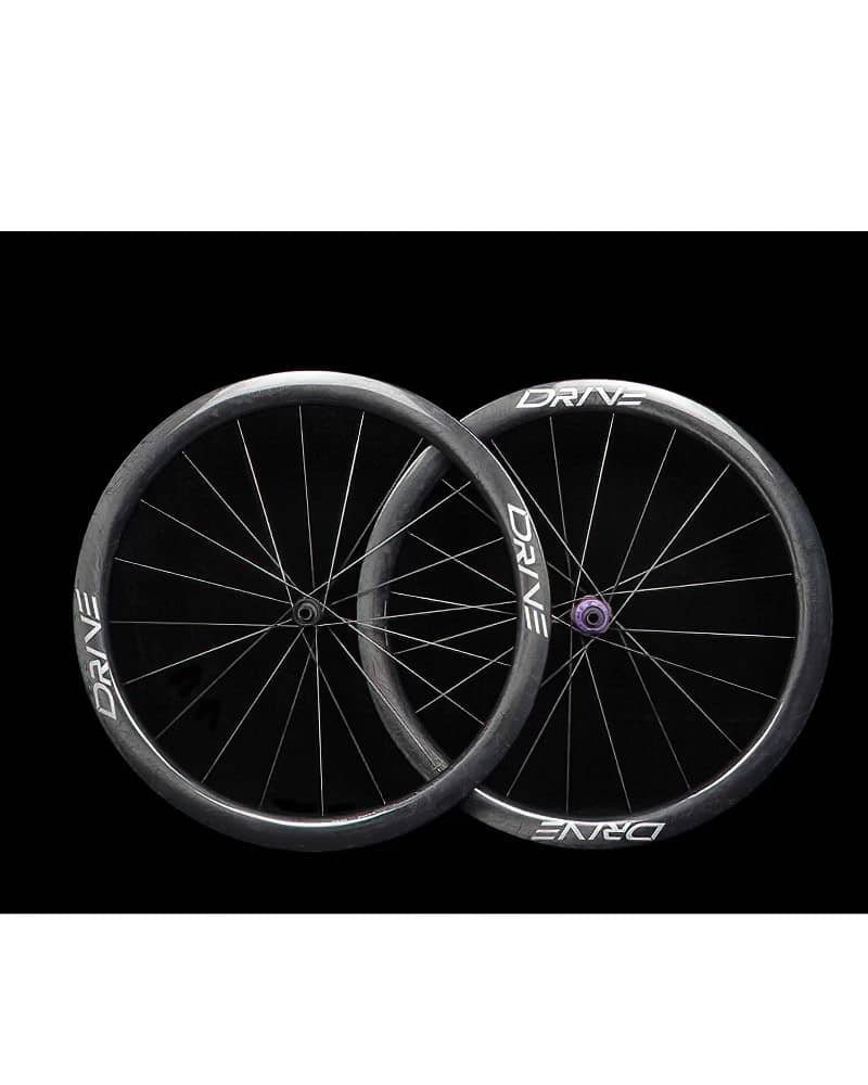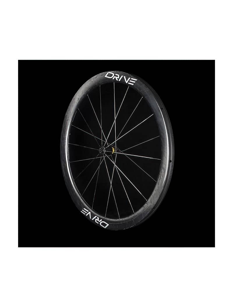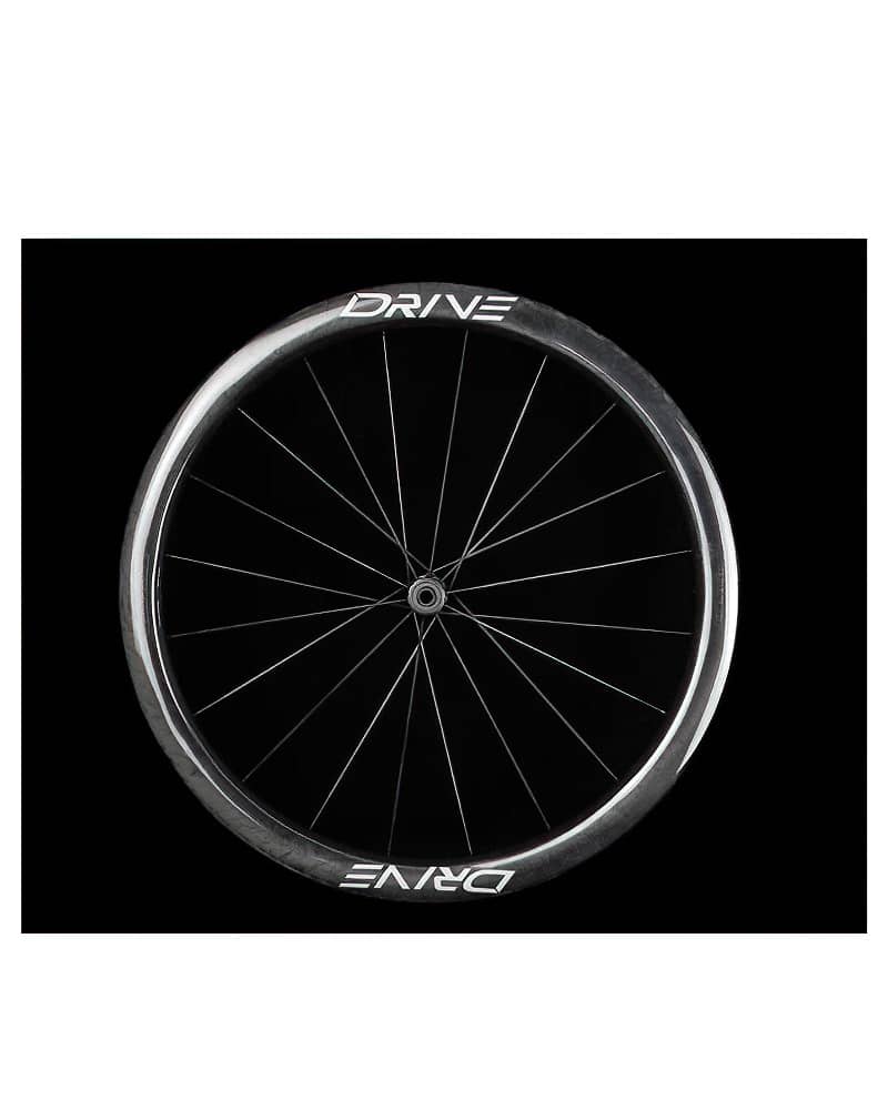 Drive G45 uses high modulus carbon fiber spokes. The wheels are 7% stiffer than a comparable wheelset using steel spokes. This difference in stiffness is immediately apparent when out for a ride. Carbon spokes are also three times more fatigue resistant than their steel counterparts. The loss of tension experienced riding steel spokes with long-term use can essentially be avoided.