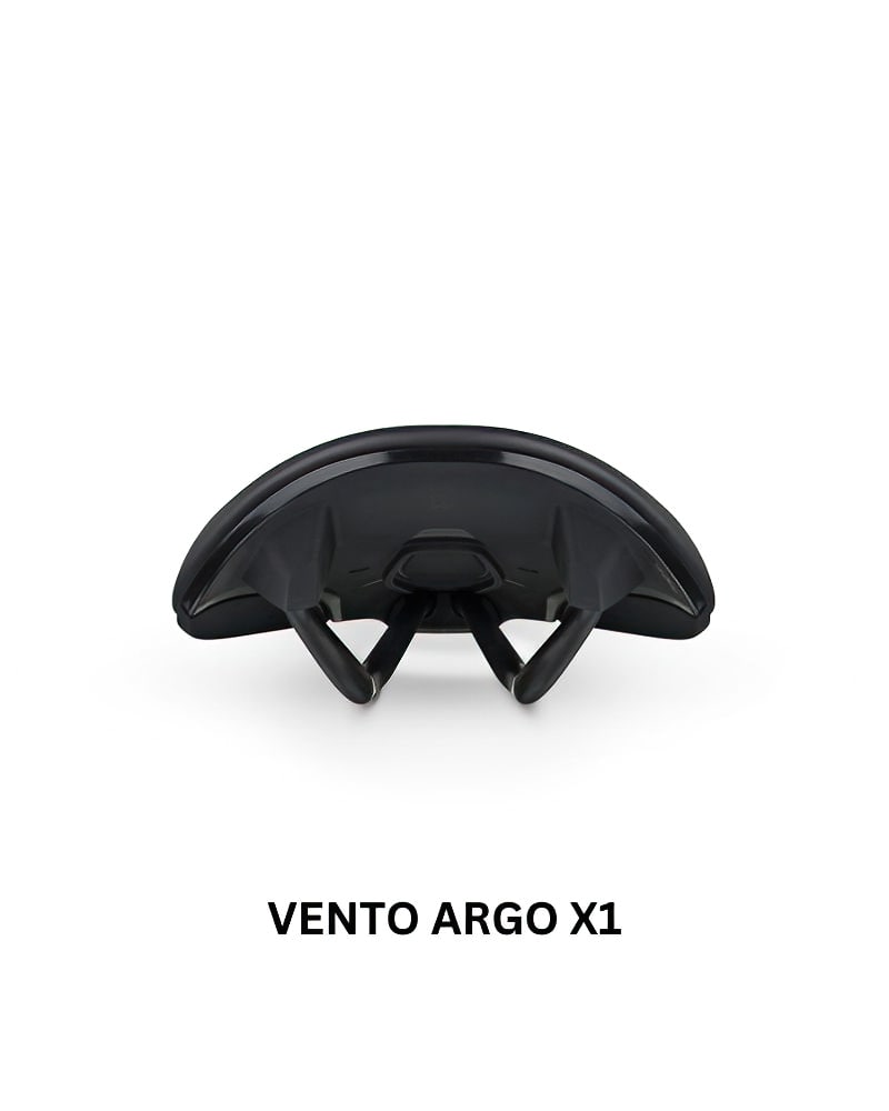 Argo X is a low-profile saddle with a transition from nose to wing that helps deliver efficient pedaling in every riding positions. A wider nose provides more support to help riders hold their grip during steep climbs and acts as an optimal base from which to produce power without sacrificing comfort when pedaling on the drops. The saddle becomes a control device when you drop your seatpost on singletrack; its rounded contours allow smooth and fast movement of your legs around the saddle to help you stay on course.