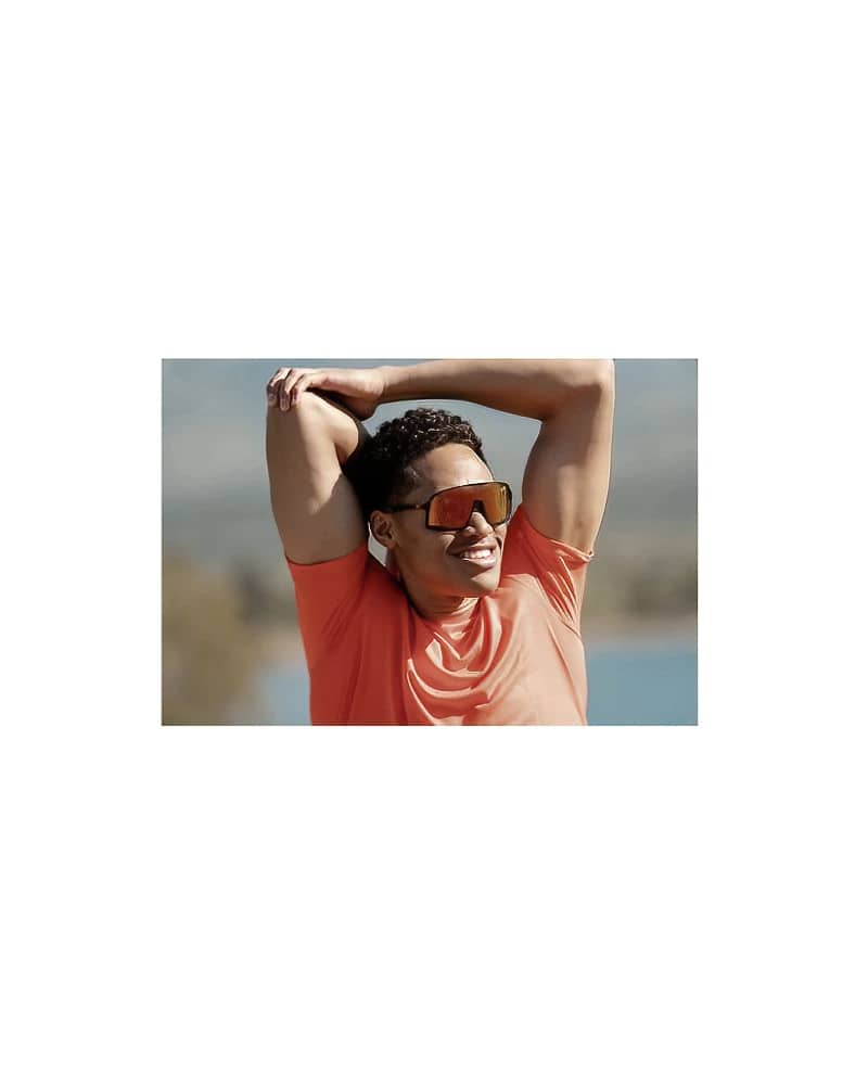 Knockterra™ Performance Lens Tech With both water-resistant and oil-resistant coatings built in, any sweat, water, or fingerprint that makes its way to your lenses during your workout won’t hinder your performance. Purposefully non-polarised, they also allow for enhanced depth perception for sports that rely on this visual aid like trail running! As always, these lenses are impact resistant and provide full UV400 protection.