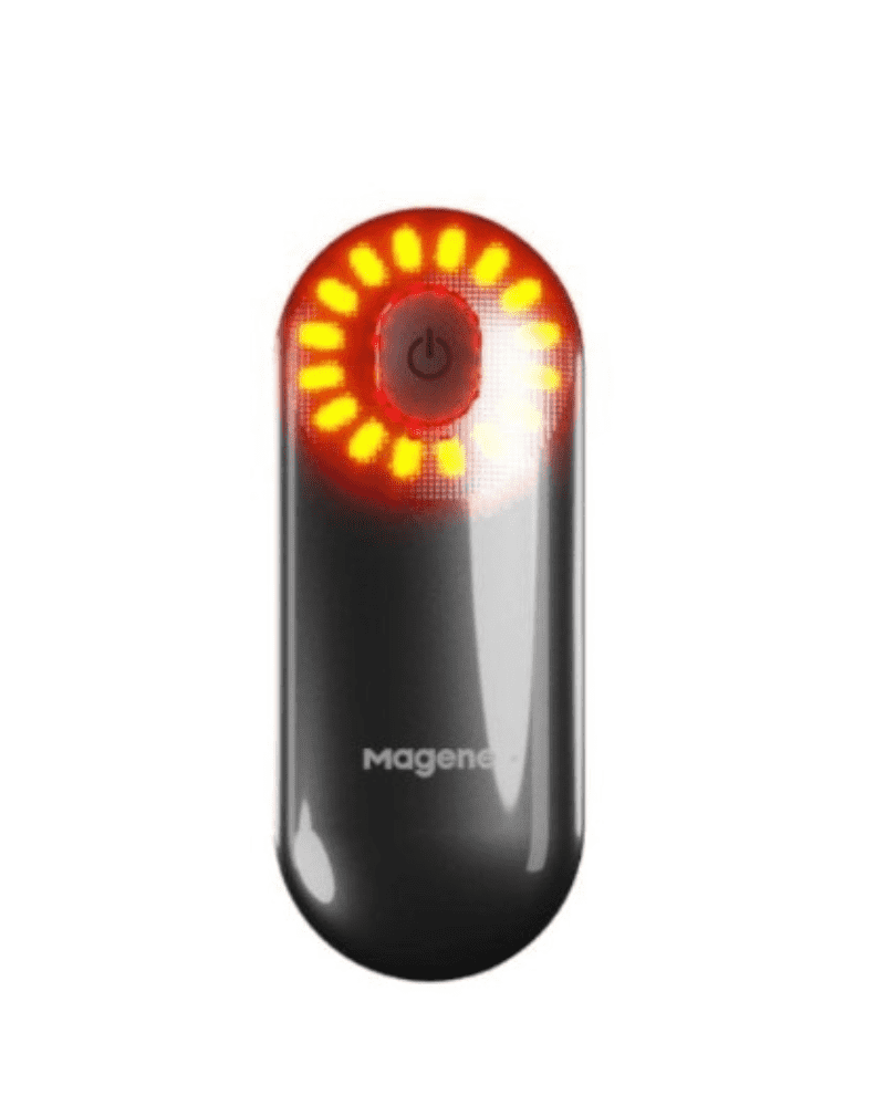 Magene L508 radar tail light adopts millimeter-wave pulse signals and has 40° beam angle, able to detect rear vehicles within 140m even at bends. Support 5 light modes, suitable for various scenarios.