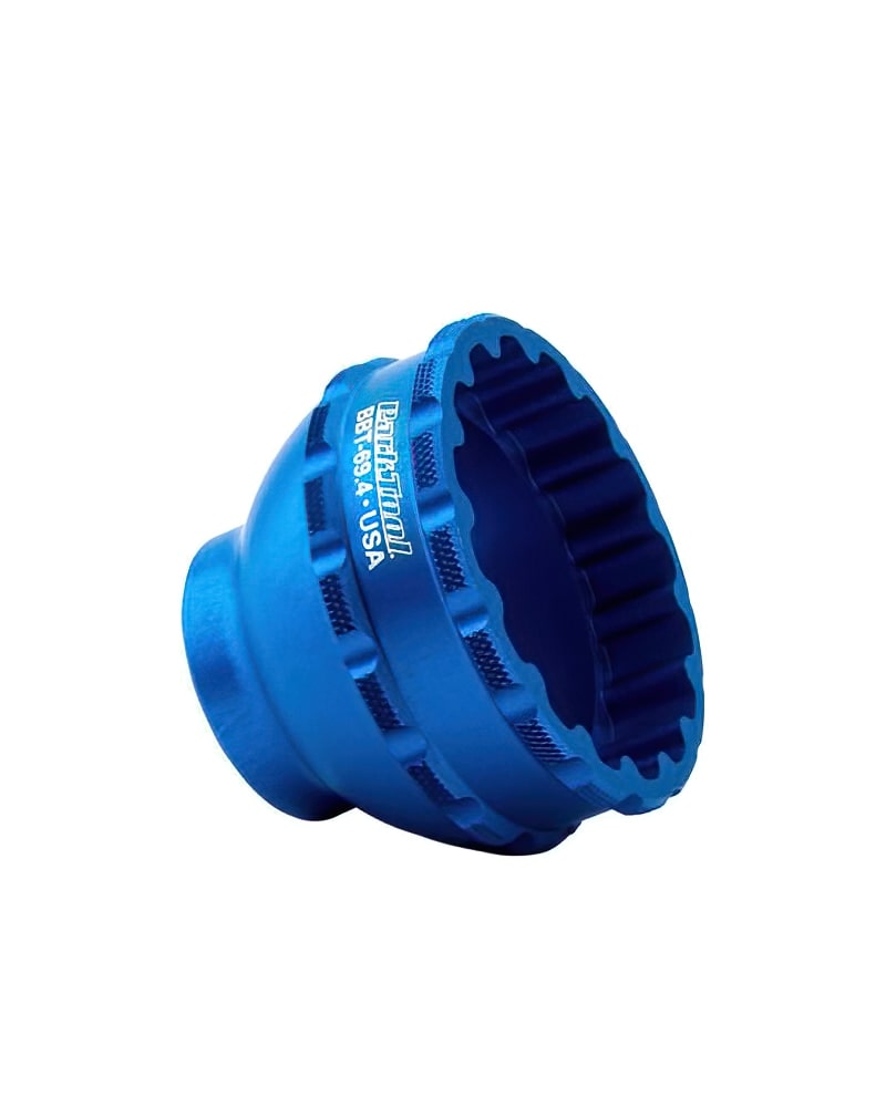 A precision CNC-machined aluminum tool for the installation and removal of select threaded bottom brackets with 12-notch tool fittings, including SRAM® BSA DUB®, Race Face® Cinch®, Rotor® BSA30, and others. Manufactured in-house by Park Tool, anodized for easy identification and featuring a ratchet/torque wrench-compatible 3/8″ drive.