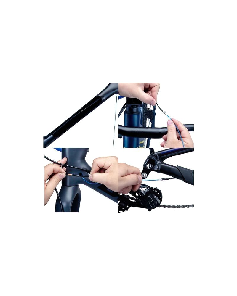 Di2®-specific adapter — Specially-designed connector clips into the end of Shimano® E-tube® Di2® shift wire, and is perfectly sized to fit into frame holes as small as 6 mm