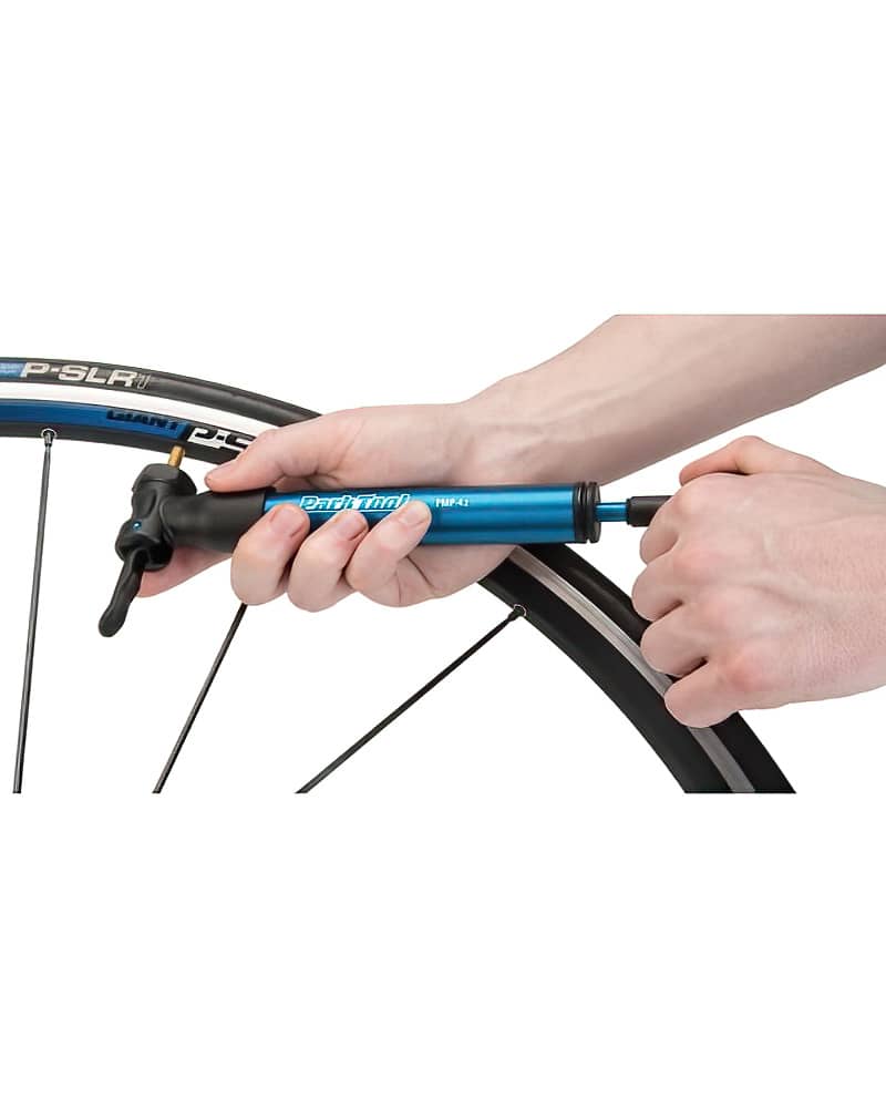 Small enough to carry along yet big enough to pump efficiently. The PMP-4.2 is now available in two colors and comes with a handy holder that bolts under a water bottle cage and holds the pump securely. All aluminum barrel construction ensures long life and smooth operation.