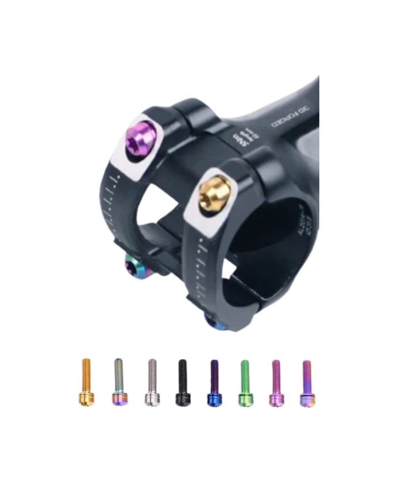 The S-PARTS Titanium Alloy Stem Screw Series M5 L18 offers superior strength and lightweight performance. Available in a variety of vibrant colors and finished with advanced coloring techniques, these screws are designed for durability and aesthetics. Perfect for universal application in bicycle stems, they provide a secure and stylish upgrade to your bike.