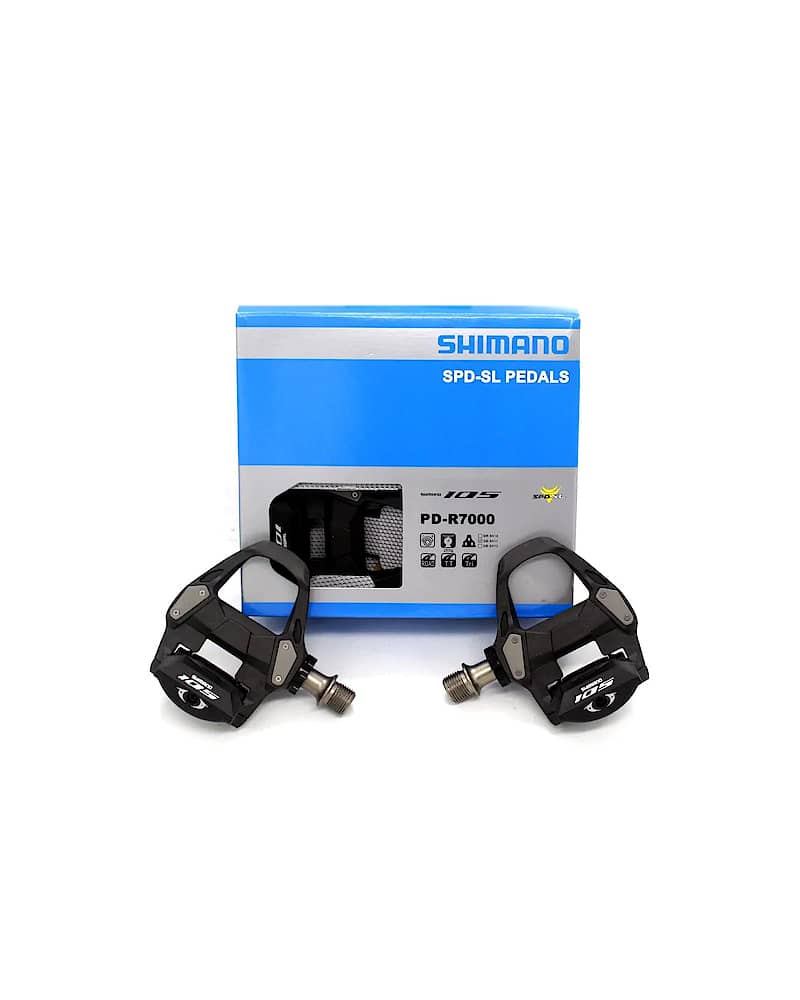 Shimano’s SPD-SL pedal system for road bikes is designed for maximum power transfer. The same holds true for the R7000 pedals from the 105 series that help you get all your power onto the road, thanks to a light and stiff carbon reinforced resin pedal body and a wide stainless steel contact surface.
