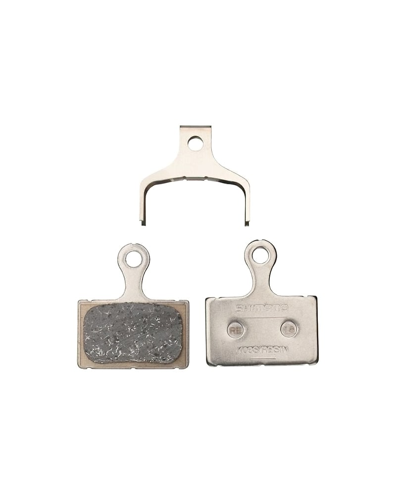 Shimano K03S Resin Disc Brake Pads and Spring: Shimano K03S brake pads feature a resin pad compound and steel backplate.