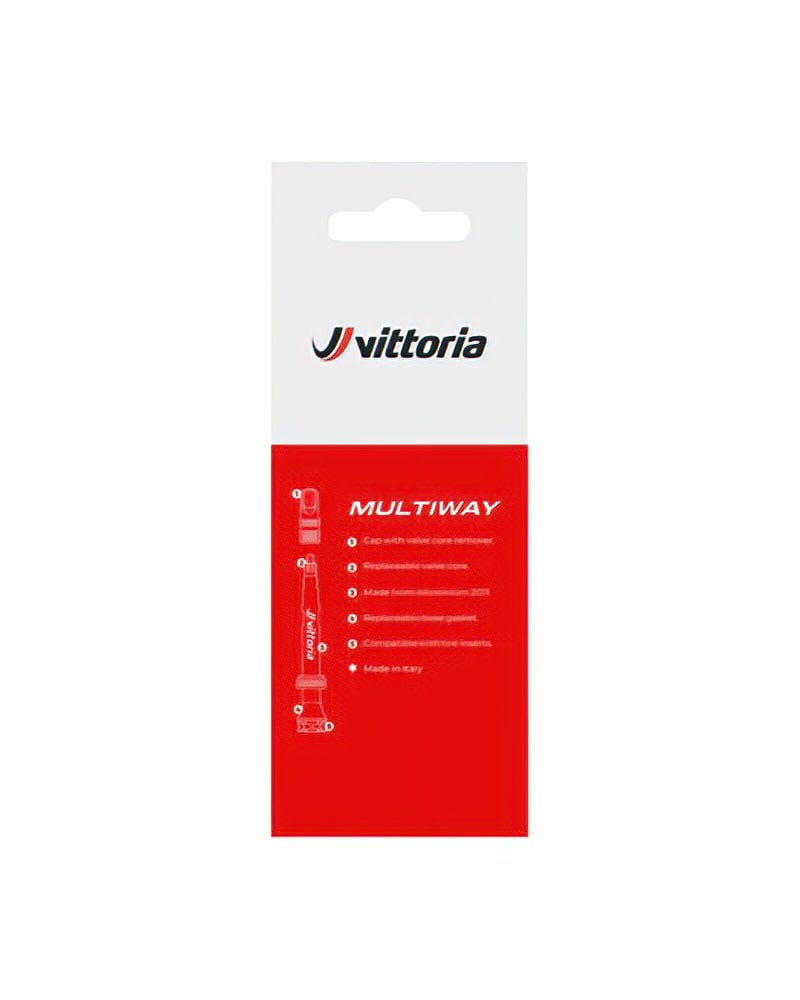 Vittoria Multiway tubeless valves are made with premium aluminium to offer ultimate durability and lightweight. The alloy cap features a valve core remover tool for easy and quick application. The Multiway valves are compatible with high-concentrated particles sealant as well as with tire inserts, making it the must-have valves for the best tubeless tire & rim set-up. Available in 40 mm, 60 mm, 80 mm and 100 mm, Vittoria Multiway valves are suitable for all type of rim depth, for both road and mtb wheels. The gasket and valve core are replaceable for extended product usability.